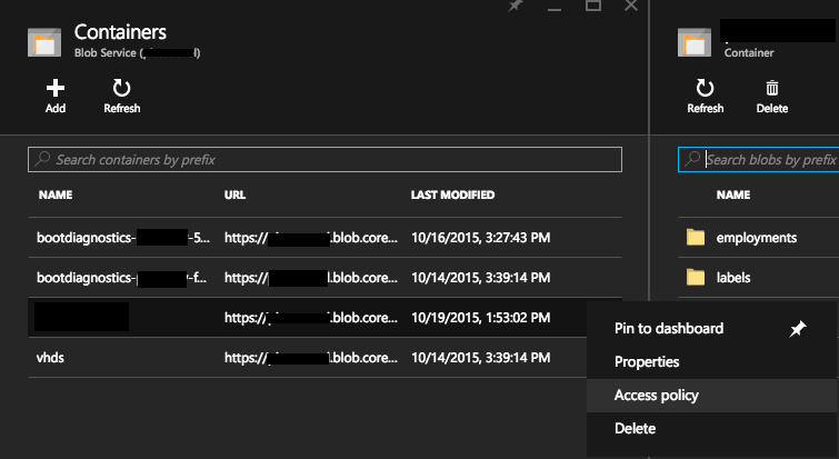 Pour finir, aller sur votre portail et verifier que vos Containers (alias buckets) ont bien les droits que vous souhaitez attribuer. Les containers sont privés par défaut, si vous désirer les rendre public, changer la règle d'accès du container avec la valeur "Container".