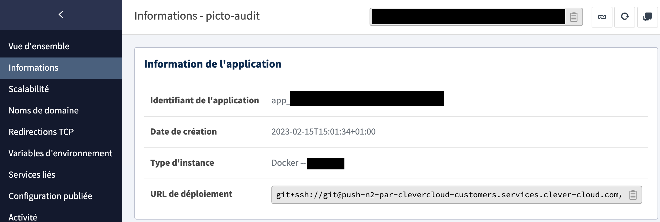 Ajoutons ensuite une destination supplémentaire à votre dépôt git, en utilisant la commande git remote. La valeur de remote à préciser figure dans le volet “informations” de votre application, sur votre tableau de bord.